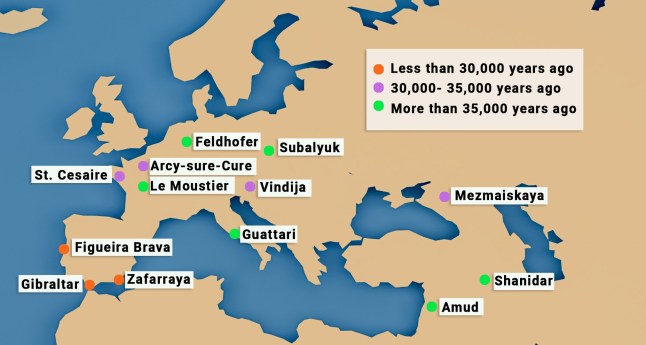 Principal sites showing the most recent evidence of Neanderthals (Picture: Getty Images)The Neanderthals,or Homo neanderthalensis,lived from about 400,000 to 40,000 years ago.Our closest human relatives,they evolved across Europe and Asia while modern humans were still evolving in Africa.Neanderthal populations were adaptable,living in colder environments across modern-day England and Siberia,ranging down to the warmer regions of Spain and Italy.Smaller than the average human,they ranged in height from around 4’11” to 5’8″,but were broader and more stocky. Their strong facial features included a large nose and strong brow ridge.We know from DNA analysis that the Neanderthals mated with early humans– Homo sapiens – resulting in the continuation of their DNA,but exactly why the species disappeared is still unknown.One theory is they were out-competed for food and resources by incoming Homo sapiens,or may have simply been replaced by them.Alternatively,rapid climate change may have been to blame.Whatever the reason,our closest relatives suddenly went extinct around 40,but a little bit of them lives on.Source: Natural History Museum