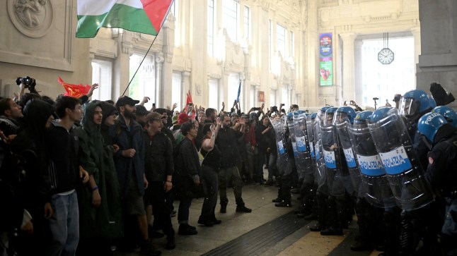 Police have tried to block protesters from the station (Picture: Reuters)