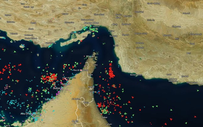 Hundreds of ships have come to a halt in the Strait of Hormuz (Picture: Marine Traffic)
