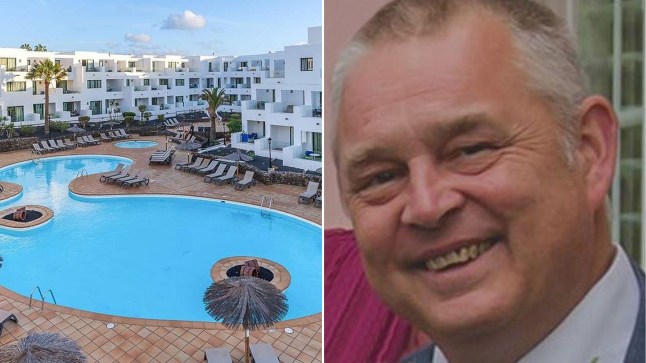 Father-of-two Darren Silcox,56,was one of two men who fell into the atrium stairwell while on a family holiday at Galeon Playa Apartments in Lanzarote.